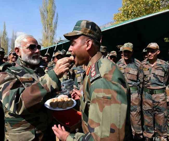 मोदी ने चीन सीमा पर जवानों संग मनाई दीपावली