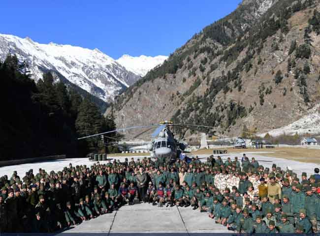 प्रधानमंत्री नरेंद्र मोदी ने सेना और आइटीबीपी के जवानों को संबोधित करते हुए कहा कि रक्षा के क्षेत्र में भारत उन्नति के पथ पर है। भारतीय सेना को यूएन शांति अभियान में पूरे विश्व से प्रशंसा मिल रही है। सेना के जवान लोगों में सुरक्षा व निडरता की भावना फैलाते हैं। 125 करोड़ भारतीयों के भविष्य और सपनों की सुरक्षा करते हैं। पीएम ने ग्रामीणों से कहा कि वे अपनी समस्या को लेकर