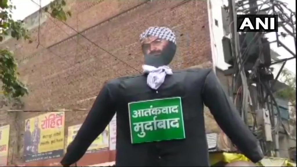 Varanasi: Locals hold protest against Pakistan and terrorist outfit Jaish-e-Mohammed chief Masood Azhar over the #PulwamaAttack.